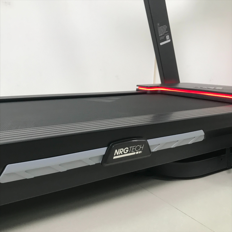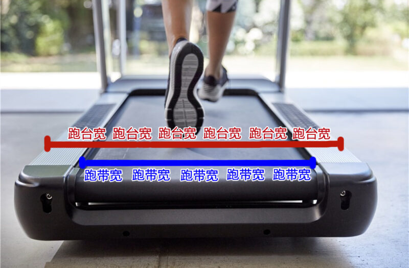 跑步机的跑台包含两侧安全踏板和前端马达,而我们运动中使用的区域是跑带,现在市面上很多厂家说自己跑台有多宽,大家不要被误导了,我们使用跑步机是在跑带上运动的,所以还是要看跑带的面积。家用跑步机的跑带宽度在42-55cm之间,跑带越宽占地越大,价格也相对贵一些,所以不必盲目追求宽跑带,简单快捷的评判方法是跑带宽度大于使用者肩膀宽度就可以了。