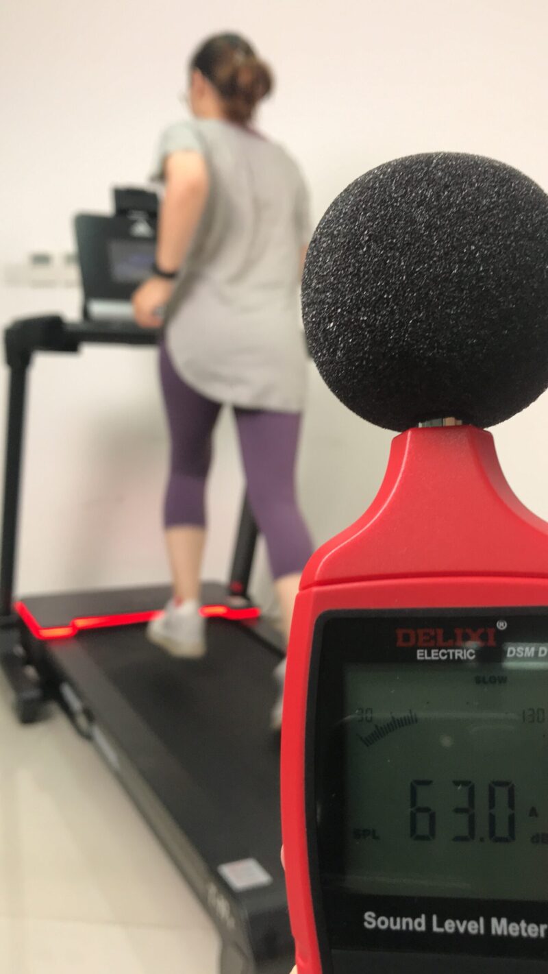 一般正常说话的声音是60分贝,走在闹市区的声音是70分贝,摩托车在路上穿梭95分贝。所以跑步机的运行声音选择70分贝以下的足够家庭环境使用。另外新机刚开始使用时声音会大一些,磨合一段时间后声音会变小一些。如果想要十分安静的有氧健身设备可以选择椭圆机哟。