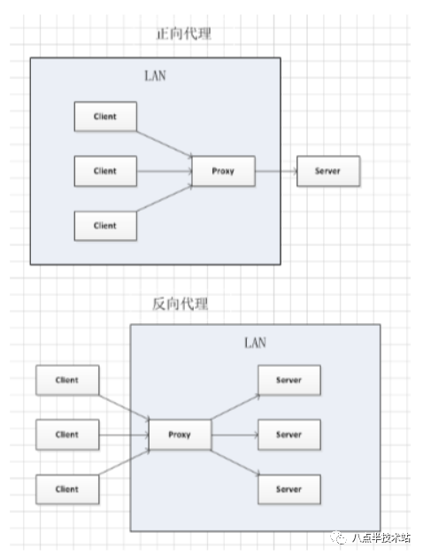 反向代理,客户端无感知,因为客户端始终只和代理服务器通信,并不知道代理服务器还会将请求转发到其他的服务器。