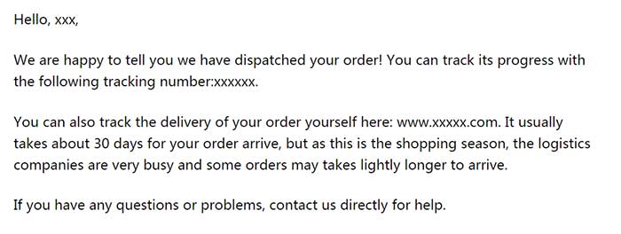 3、告知客户发货情况邮件模板