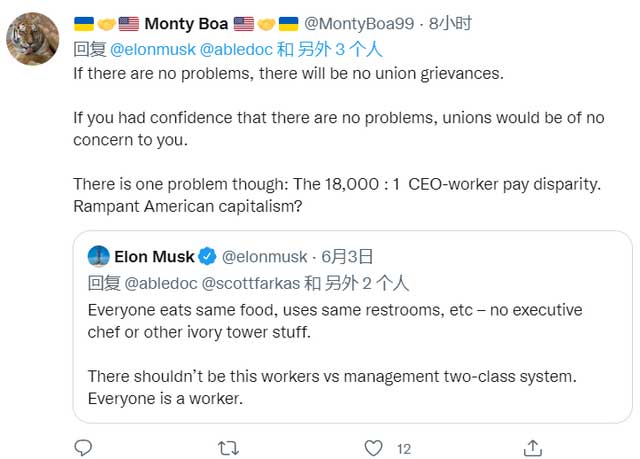而在下方评论中,有网友接着质疑了马斯克的说法,称其作为 CEO 与员工有 18000:1 的薪酬差距。