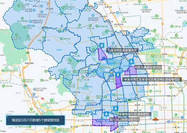 北京市海淀区新型冠状病毒肺炎疫情防控工作领导小组办公室5月21日通报:为遏制疫情扩散蔓延,保障群众健康安全,按照“非必要不流动”原则,经研判,自5月21日12时至5月28日12时(暂定),海淀区全域实行提级管控措施,现通告如下: